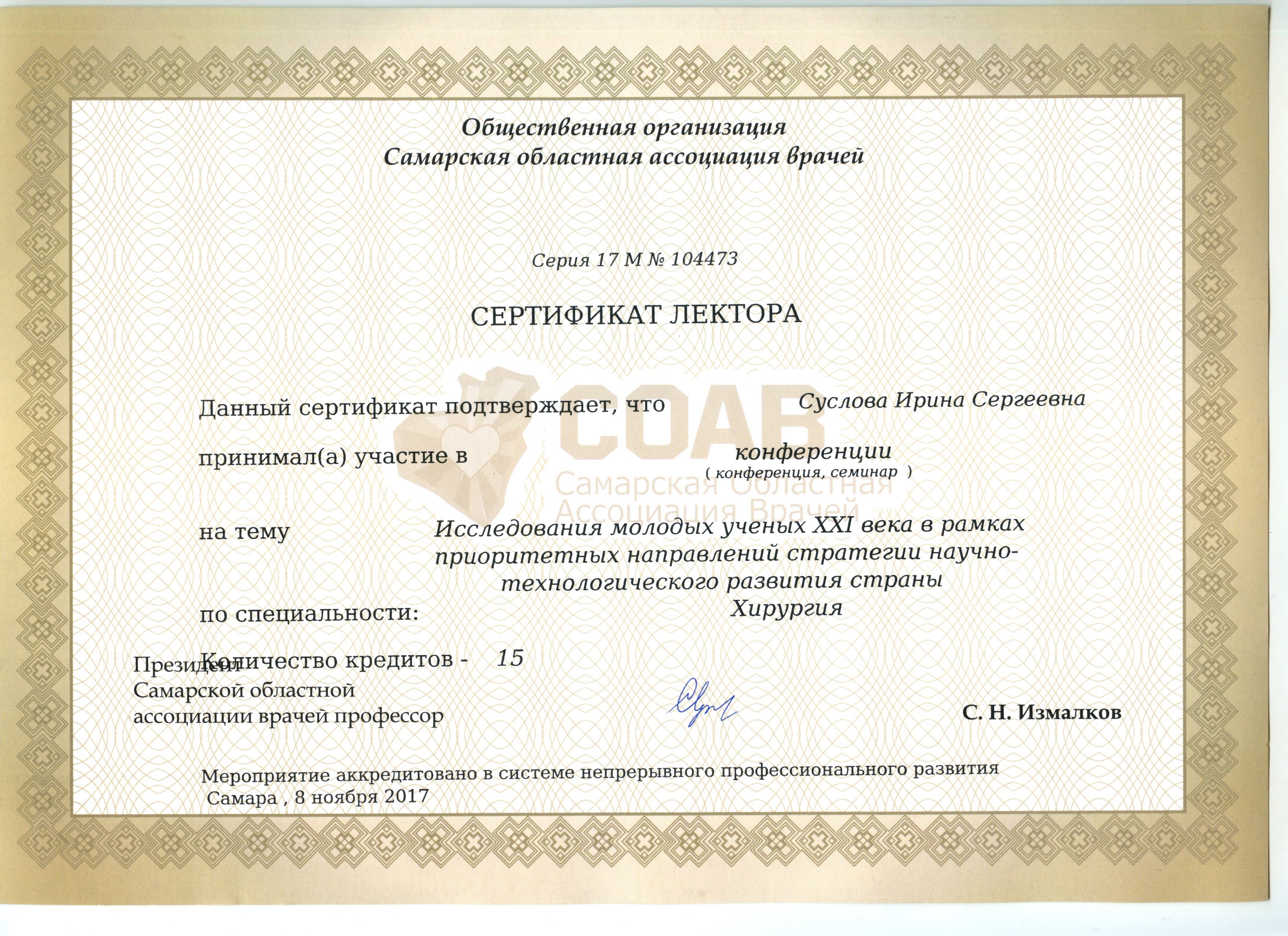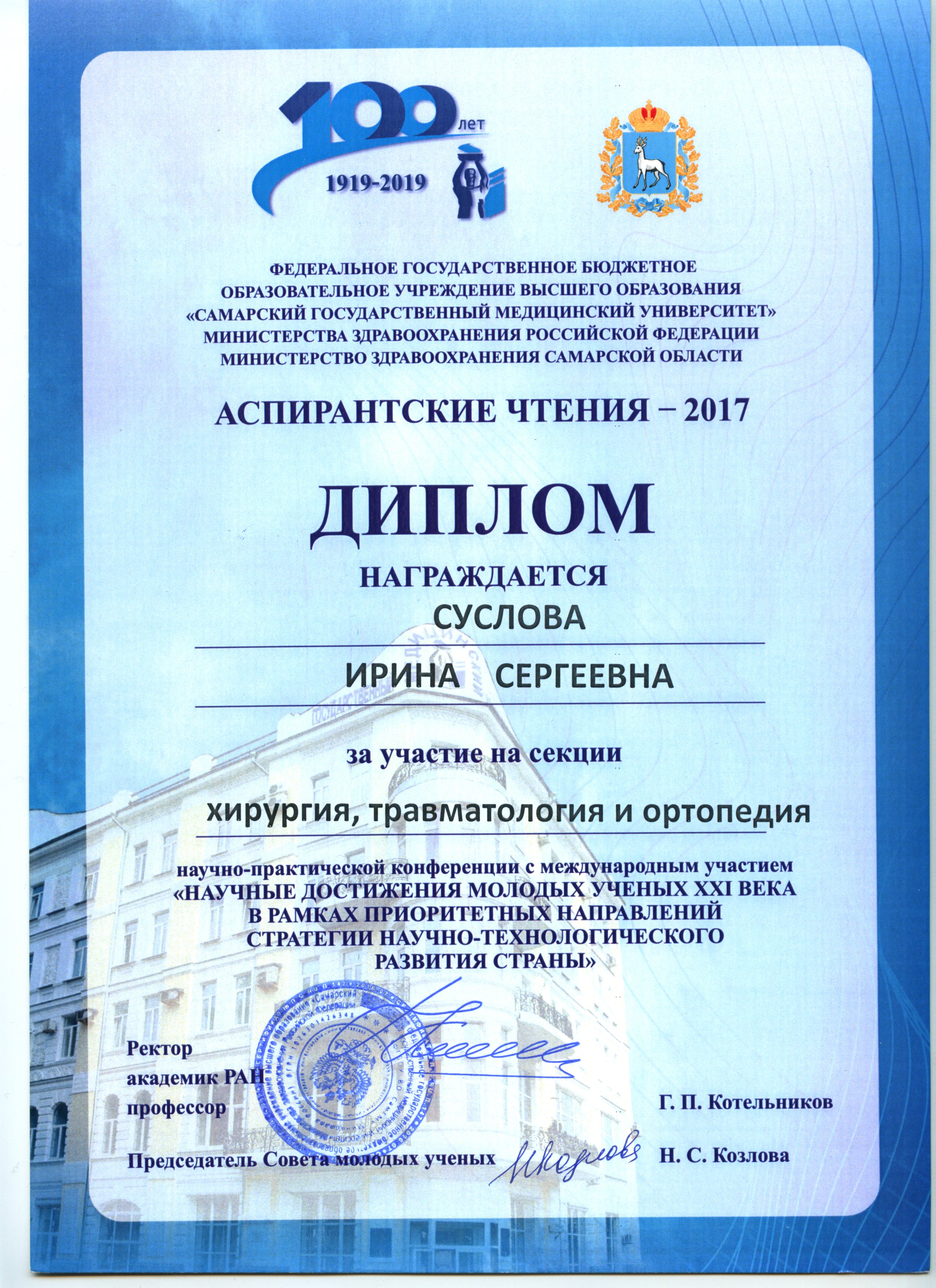8 ноября 2017 года в Самарском государственном медицинском университете прошла научно-практическая конференция с международным участием «АСПИРАНТСКИЕ ЧТЕНИЯ – 2017».